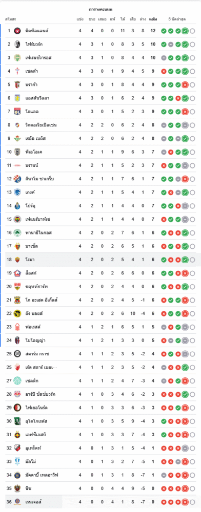 📈 สถานการณ์บนตารางคะแนน ยูฟ่ายูโรปาลีก