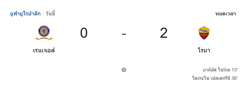 จาก : ผลบอลสด ยูฟ่ายูโรปาลีก ระหว่าง กลาสโกว์ เรนเจอร์ส 0-2 เอเอส โรม่า วันนี้ 7/11/68 – บ้านกีฬา