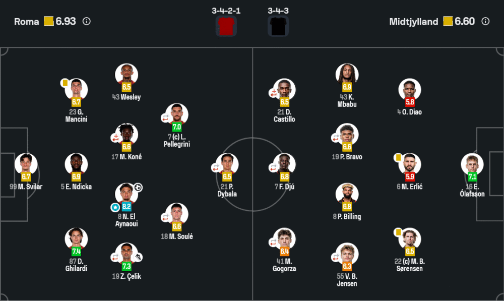 เกมนี้รางวัล Man of the Match ไปแบบไม่ต้องลุ้นให้ใครโหวต นีล เอล อัยนาวี กองกลางตัวคุมจังหวะของโรม่า กดเรตติ้งสูงสุดถึง 8.2 ไล่ระดับเท่ากับ เอล ชาราวี แต่โดดเด่นกว่าในแง่ความต่อเนื่องตลอด 90 นาที เขาไม่เพียงยิงประตูเบิกร่องสำคัญตั้งแต่นาทีที่ 7 ยังเป็นคนเชื่อมเกมจากแดนกลางสู่แนวรุกอย่างเนียนตา การจ่ายบอลแม่นยำ การยืนตำแหน่งช่วยตัดเกมสวนกลับของมิดทิลแลนด์ก็ทำได้ยอดเยี่ยม สมกับเป็นหัวใจของแผงกลางหมาป่ากรุงโรมในค่ำคืนนี้