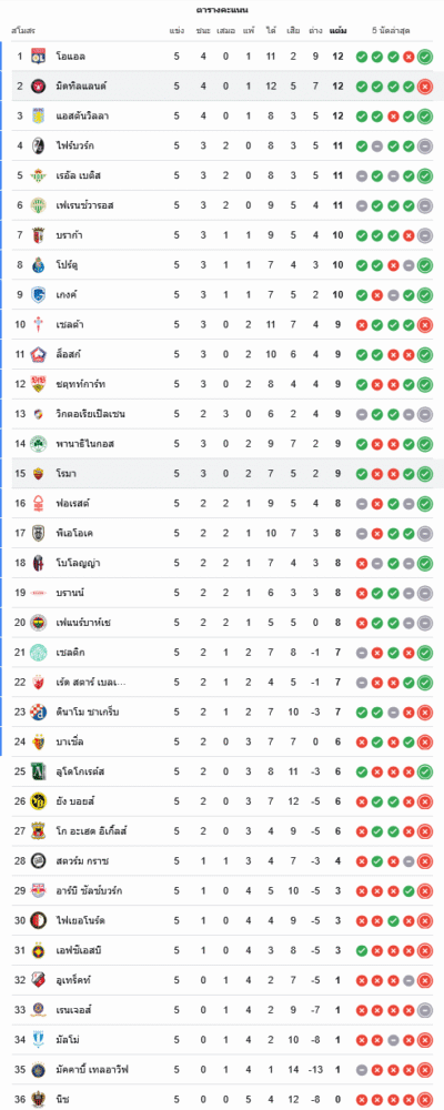 จากตารางคะแนนยูฟ่ายูโรปาลีกที่ปรากฏ โรม่าเก็บเพิ่มเป็น 9 คะแนน จาก 5 นัด สถิติชนะ 3 แพ้ 2 ยิงได้ 7 เสีย 5 ผลต่างประตูได้เสีย +2 ขยับขึ้นมายืนกลางตารางในอันดับที่ 15 ยังมีลุ้นเบียดพื้นที่บน ๆ หากเก็บแต้มต่อเนื่องในเกมที่เหลือ