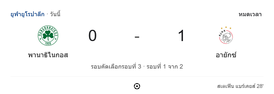 การแข่งขันฟุตบอล ยูฟ่ายูโรปาลีก 2024 รอบคัดเลือกรอบที่ 3 ระหว่างทีม พานาธิไนกอส จากกรีซ และ อาแจกซ์ อัมสเตอร์ดัม จากเนเธอร์แลนด์ จบลงด้วยชัยชนะของทีม อาแจกซ์ อัมสเตอร์ดัม ด้วยสกอร์ 1-0 ในเกมที่เต็มไปด้วยความตื่นเต้นและการเล่นที่น่าประทับใจจากทั้งสองทีม