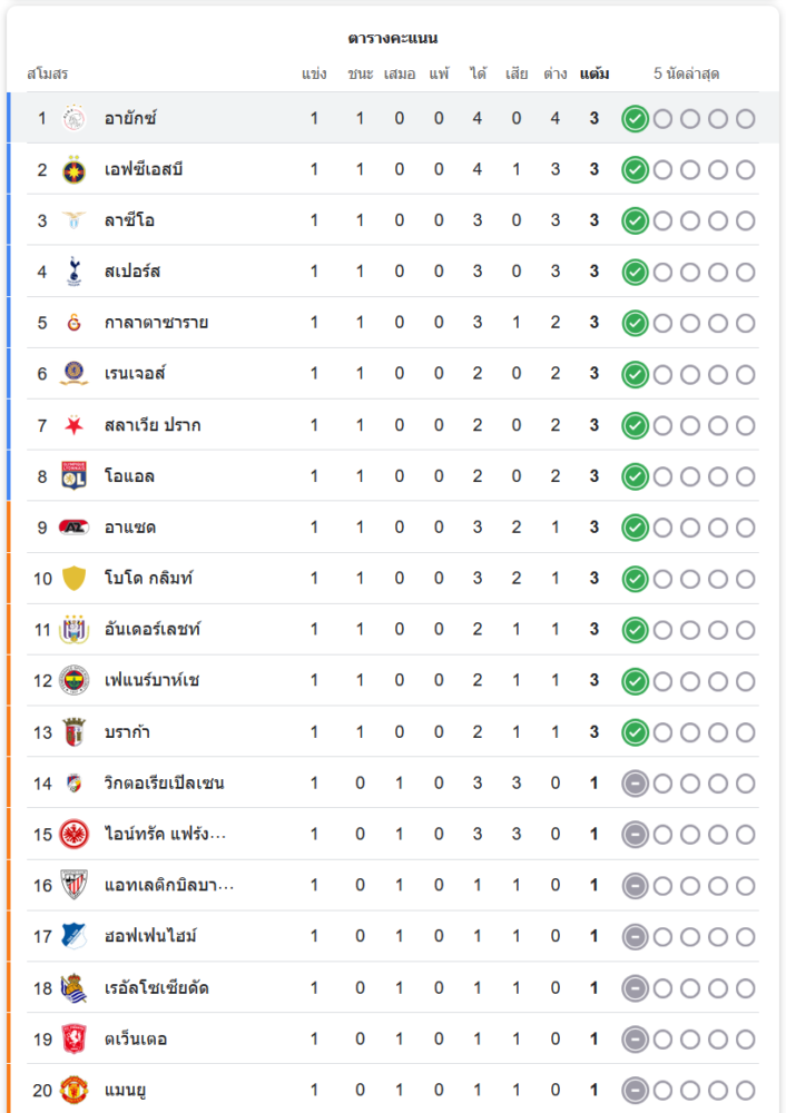 สถานการณ์ในตารางคะแนน: ชัยชนะในนัดนี้ทำให้ อาแจกซ์ ขึ้นนำเป็นจ่าฝูงของตารางคะแนน ยูฟ่ายูโรปาลีก 2024 ด้วย 3 คะแนนเต็ม และผลต่างประตูได้เสียที่ +4 ส่วน เบซิคตัส ต้องจมอยู่ท้ายตารางในอันดับที่ 36 หลังจากพ่ายแพ้ในนัดนี้