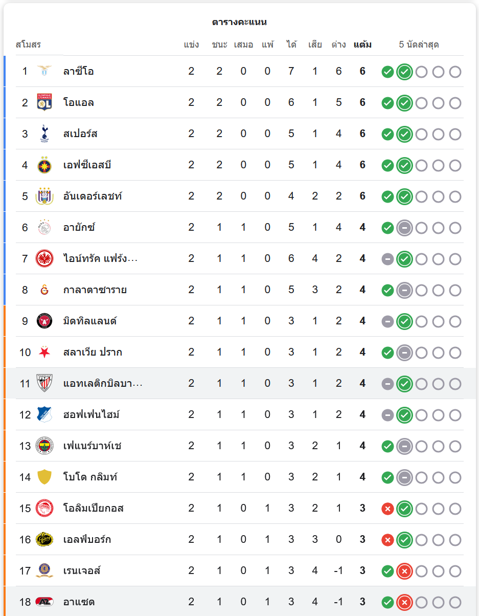 หลังจากชัยชนะนัดนี้ แอธเลติก บิลเบา ขยับขึ้นมาอยู่ในอันดับที่ 11 ของตารางคะแนน ยูฟ่ายูโรปาลีก 2024 โดยมี 4 คะแนน จาก 2 นัด ขณะที่ อาแซด อัลค์มาร์ ยังไม่สามารถเก็บแต้มได้ อยู่ในอันดับ 18 โดยยังต้องปรับปรุงฟอร์มการเล่นอย่างเร่งด่วน