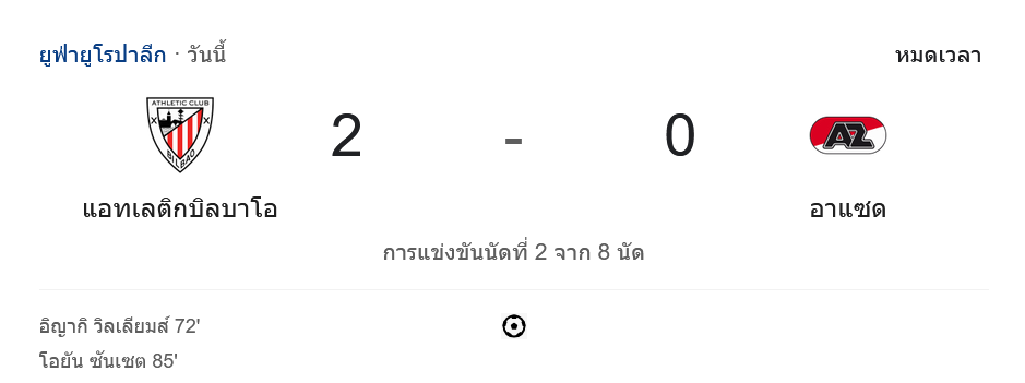 แอธเลติก บิลเบาเฉือนอาแซด อัลค์มาร์ 2-0 คว้าชัยสำคัญในยูฟ่ายูโรปาลีก 2024