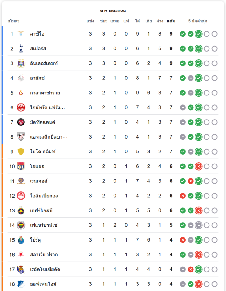 จากชัยชนะในนัดนี้ เอเอส โรม่า เก็บได้ 4 คะแนน ขยับขึ้นมาอยู่ที่อันดับที่ 19 ของตาราง ในขณะที่ ดินาโม เคียฟ ยังคงอยู่ในอันดับที่ 35 โดยยังไม่มีคะแนนจาก 3 นัด