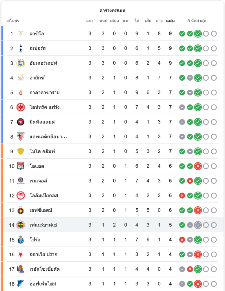 สถานการณ์ในตารางคะแนน