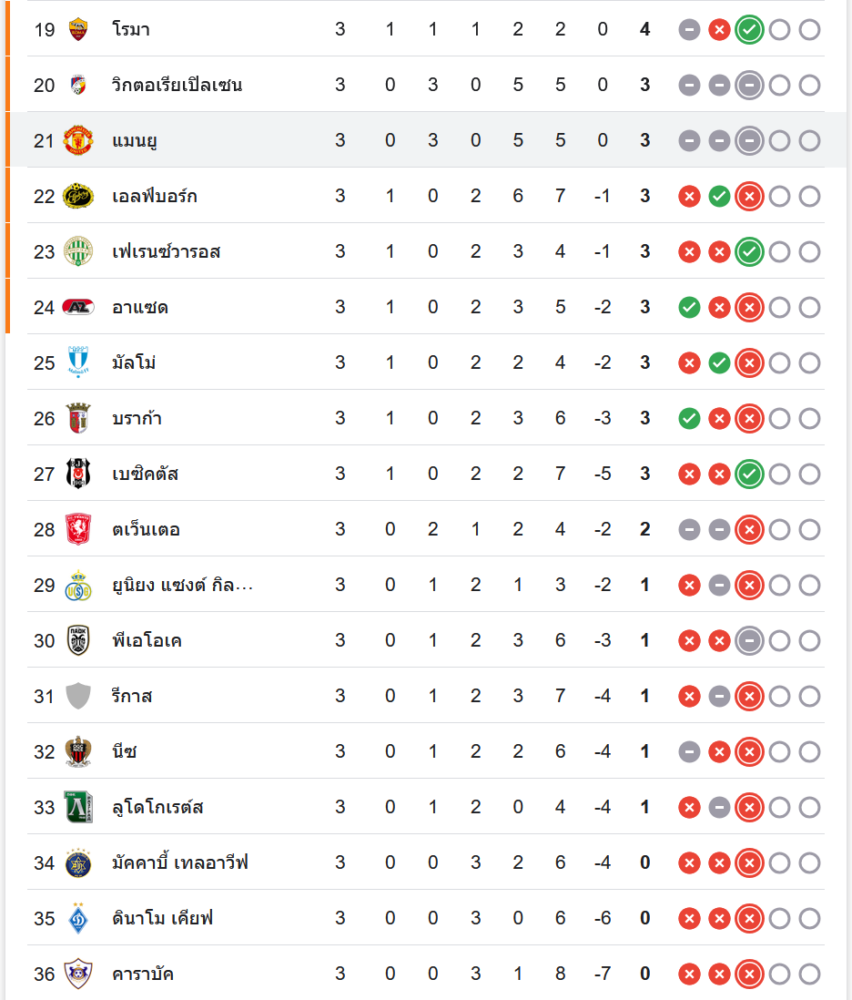 ผลเสมอในนัดนี้ทำให้ แมนเชสเตอร์ ยูไนเต็ด เก็บเพิ่มเป็น 3 คะแนน รั้งอันดับที่ 21 ของตารางคะแนน ในขณะที่ เฟเนร์บาห์เช่ อยู่ที่อันดับ 14 มี 5 คะแนน จากการลงเล่น 3 นัด