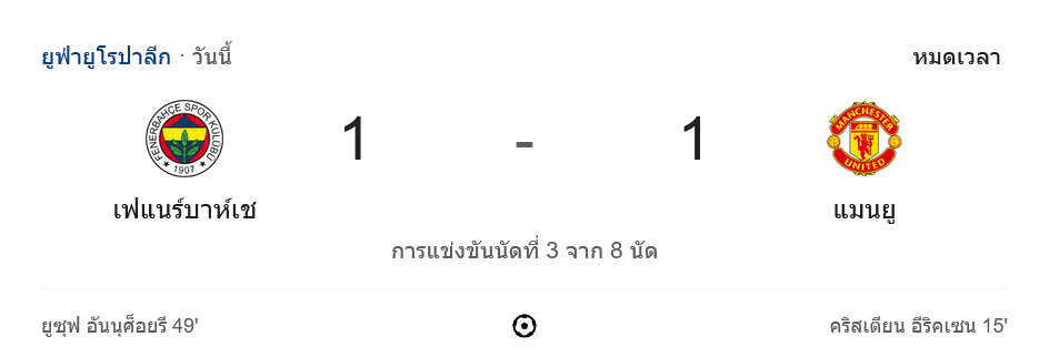 การแข่งขันฟุตบอล ยูฟ่ายูโรปาลีก 2024 นัดที่ 3 ของรอบแบ่งกลุ่ม ระหว่าง เฟเนร์บาห์เช่ จากตุรกี และ แมนเชสเตอร์ ยูไนเต็ด จากอังกฤษ จบลงด้วยการเสมอ 1-1 โดยทั้งสองทีมต่างก็มีช่วงเวลาที่เล่นได้ดี แต่ไม่สามารถคว้าชัยชนะได้ในแมตช์นี้ ทำให้แบ่งกันไปทีมละ 1 แต้ม