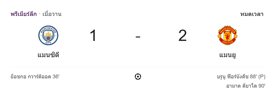 ศึก พรีเมียร์ลีก 2024 นัดแมนเชสเตอร์ดาร์บี้เดือด แมนเชสเตอร์ ยูไนเต็ด สร้างปาฏิหาริย์บุกมาเอาชนะ แมนเชสเตอร์ ซิตี้ 2-1 หลังโดนนำไปก่อนในครึ่งแรก แต่กลับมาฮึดในช่วงท้ายเกม คว้า 3 แต้มสำคัญ พร้อมสร้างสีสันในศึกครั้งนี้อย่างสุดดุเดือด โดยเกมนี้ ผลบอลสด ระบุว่าทั้งสองทีมเล่นกันอย่างสูสีทั้งโอกาสยิงและการครองบอล