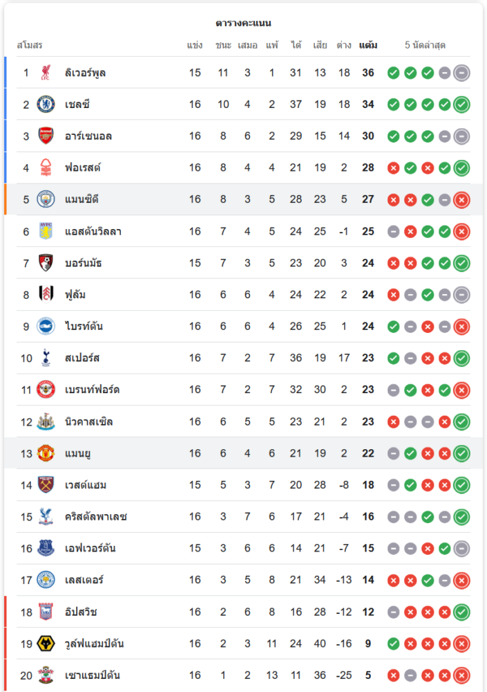 ชัยชนะนัดนี้ทำให้ แมนฯ ยูไนเต็ด เก็บเพิ่มเป็น 22 คะแนน ขยับขึ้นมาอยู่อันดับ 13 ส่วน แมนฯ ซิตี้ พลาดโอกาสขยับขึ้นอันดับ 4 ยังคงอยู่ที่ 5 มี 27 คะแนน