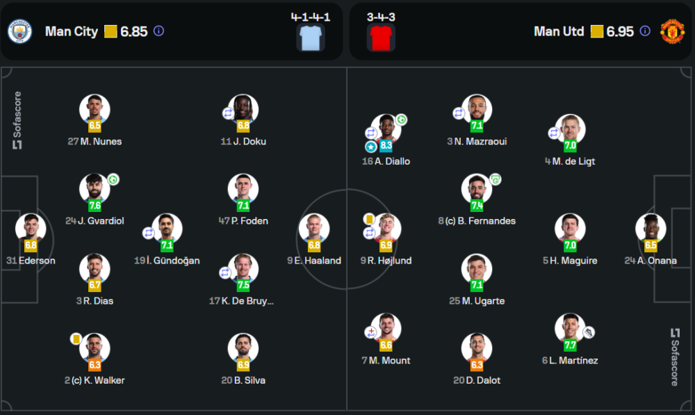แมนฯ ซิตี้ใช้แผน 4-1-4-1 เน้นการครองบอลและเจาะจากริมเส้น โดยมี เควิน เดอ บรอยน์ เป็นหัวใจสำคัญในเกมรุก เกมรับนำโดยกวาร์ดิโอลที่ทำประตูได้ในเกมนี้ แต่จังหวะโต้กลับของซิตี้กลับมีปัญหาในครึ่งหลัง ด้านแมนฯ ยูไนเต็ดมาในระบบ 3-4-3 โดยโฟกัสการตั้งรับลึกและสวนกลับเร็ว การเปลี่ยนตัว โคบี้ ไมนู ตั้งแต่ต้นเกมช่วยให้แดนกลางมีความสมดุลขึ้น ประตูชัยจากดิยัลโล่ยืนยันความเฉียบขาดของยูไนเต็ดในจังหวะสุดท้าย