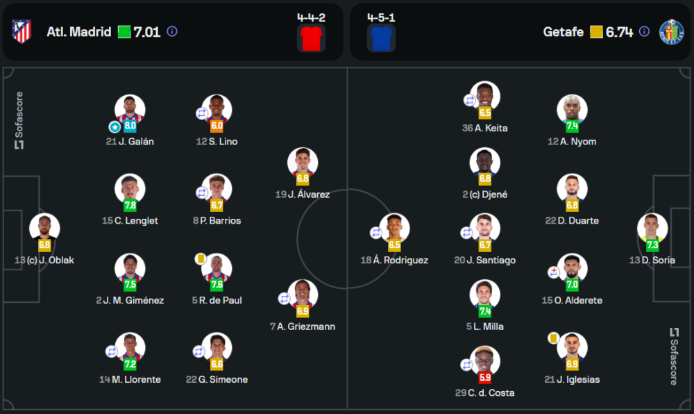 ฆาบี กาลัน แบ็คซ้ายตัวเก่งของแอตเลติโก มาดริด ได้รับคะแนนสูงถึง 8.0 จากการเล่นเกมรับและเติมเกมรุกได้อย่างยอดเยี่ยม พร้อมทั้งคอยประสานงานกับเกมรุกฝั่งซ้ายได้อย่างมีประสิทธิภาพ