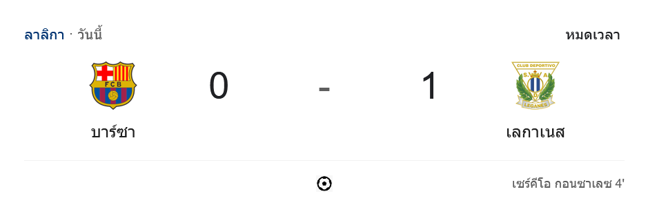 - เตะมุม: บาร์เซโลน่า 8 ครั้ง | เลกาเนส 2 ครั้ง