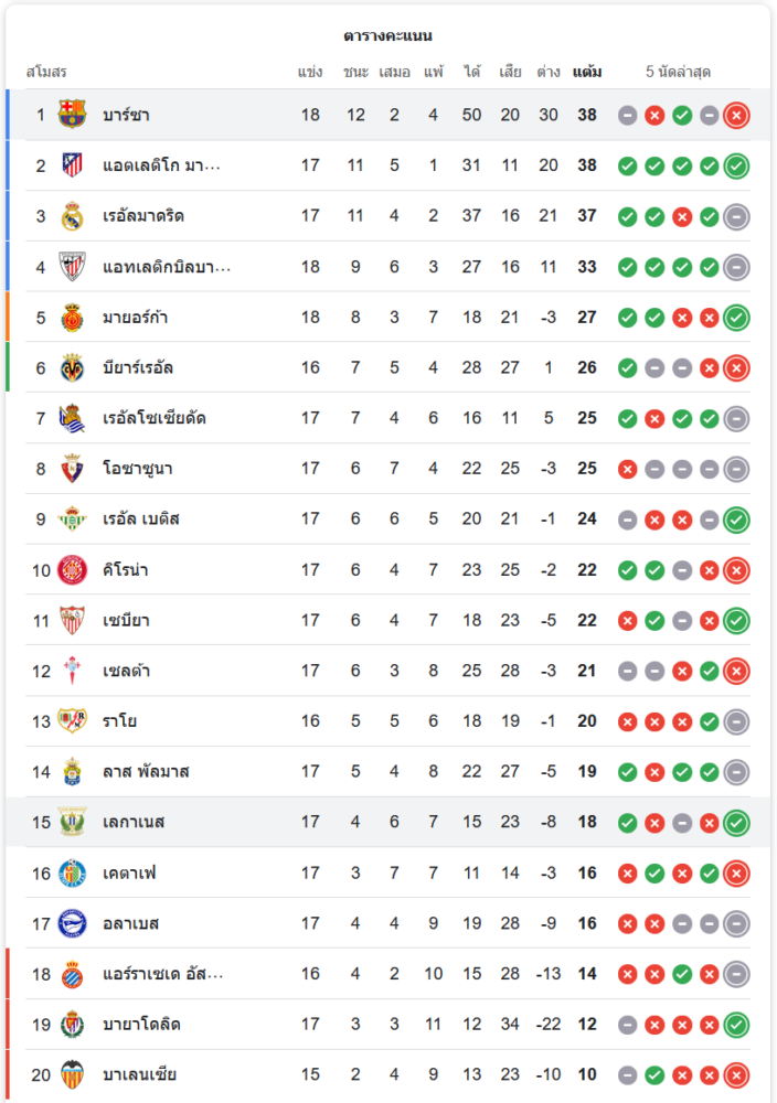 จาก : ผลบอลสด ลาลิกา 2024 ระหว่าง บาร์เซโลน่า 0-1 เลกาเนส วันนี้ 16/12/67 – บ้านกีฬา