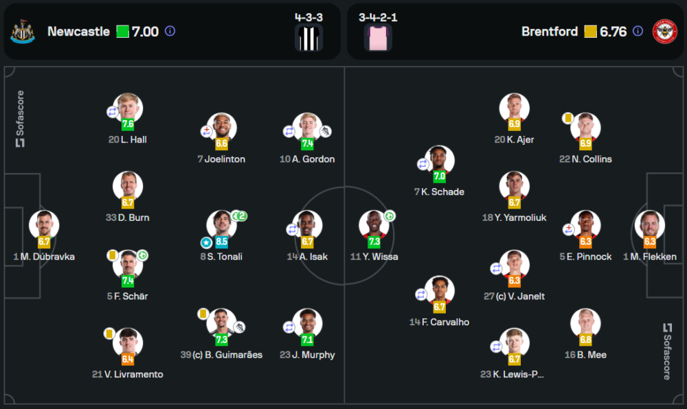 นิวคาสเซิ่ลมาในระบบ 4-3-3 เน้นการเล่นจากกลางสนามและการเปิดเกมรุกที่รวดเร็วโดยใช้ปีกซ้าย-ขวาอย่าง แอนโธนี่ กอร์ดอน และ เจค็อบ เมอร์ฟี่ ส่วนเบรนท์ฟอร์ดใช้แผน 3-4-2-1 ที่เน้นเกมสวนกลับด้วยผู้เล่นความเร็วสูง แต่เกมรับของพวกเขามีปัญหาในการหยุดยั้งกองกลางตัวรุกของนิวคาสเซิ่ล โดยเฉพาะ ซานโดร โตนาลี่ ที่เล่นได้โดดเด่นและมีส่วนสำคัญในชัยชนะครั้งนี้