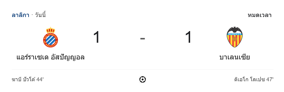 าก : ผลบอลสด ลาลิกา 2024 ระหว่าง เอสปันญ่อล 1-1 บาเลนเซีย วันนี้ 19/12/67 – บ้านกีฬา