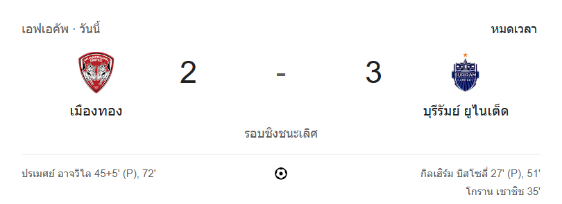 - บุรีรัมย์ ยูไนเต็ด บุกเชือด เมืองทอง ยูไนเต็ด 3-2 สุดมันส์