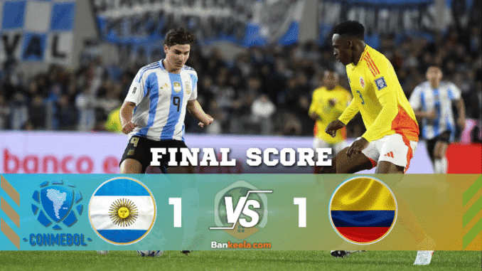 เกมคัดบอลโลก 2026 โซนอเมริกาใต้ระหว่าง “ฟ้าขาว” อาร์เจนติน่า พบ “โคเคน” โคลอมเบีย สุดมันส์ ผลจบลงด้วยสกอร์ 1-1 ที่สนามสุดเดือด บรรยากาศในสนามแน่นขนัด บ้านกีฬาอัปเดต ผลบอลสด นาทีต่อนาที พร้อมดราม่าใบแดงและลุ้นประตูสุดเดือดจนนกหวีดสุดท้าย