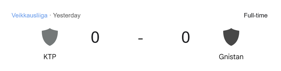เกม ไวเคาส์ลีกา เมื่อคืนนี้จบลงแบบสุดมันแต่ไร้ผู้ชนะ เคทีพี ค็อตก้า เปิดบ้านเสมอกับ กนิสตัน เฮลซิงกิ 0-0 ในเกมที่ทั้งสองฝ่ายต่างสู้กันเต็มที่แต่ไร้ความเฉียบคมในจังหวะสุดท้าย บ้านกีฬา รายงาน ผลบอลสด คู่นี้แบบดุดันเพื่อแฟนบอลทุกคน