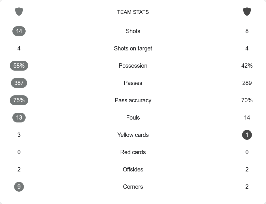 แม้เคทีพีจะครองบอลมากกว่าและมีโอกาสยิงมากกว่า 14 ต่อ 8 แต่ทั้งคู่กลับยิงตรงกรอบได้เท่ากันที่ 4 ครั้ง การผ่านบอลและความแม่นยำของเจ้าถิ่นก็เหนือกว่าแต่แนวรับของกนิสตันและผู้รักษาประตูของทั้งสองฝ่ายเล่นได้อย่างแข็งแกร่ง เกมนี้ยังมีใบเหลืองถึง 4 ใบและจังหวะฟาวล์รวม 27 ครั้งตลอดเกม