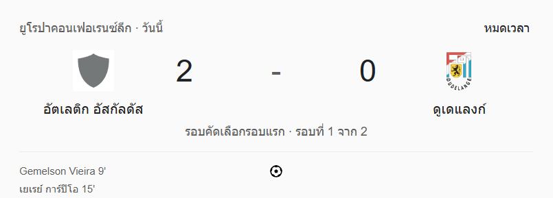 - นาทีที่ 90+7: หมดเวลาการแข่งขัน! อัตเลติก อัสกาลดัสเปิดบ้านชนะ 2-0 เก็บชัยชนะนัดแรกในรอบคัดเลือกรอบแรกของยูโรปาคอนเฟอเรนซ์ลีก