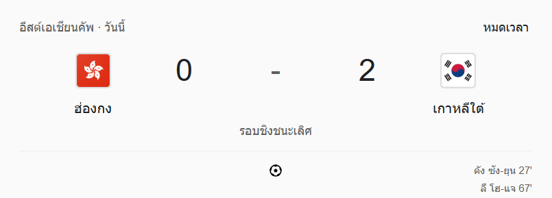 - หมดเวลา เกาหลีใต้ควบคุมจังหวะไว้ได้ทั้งหมด บุกมาคว้าชัยเหนือฮ่องกง 0-2!