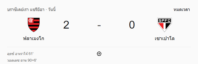 จบเกมนี้ ฟลาเมงโก้โชว์ฟอร์มแชมป์ อัดเซา เปาโล 2-0 ด้วยความเฉียบคมของ ลูอิส อาราอูโฆ และวอลเลซ ยาน พร้อมขยับนำจ่าฝูงแบบมั่นคง เซา เปาโลต้องกลับบ้านมือเปล่า ส่วนบรรยากาศในสนามเต็มไปด้วยความเข้มข้นทุกนาที คอบอลที่ติดตาม ผลบอลสด คู่นี้คงจะจุใจไปตามๆ กัน