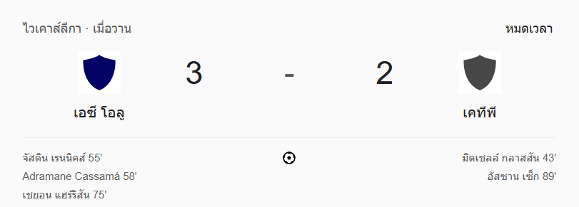 - หมดเวลา: เอซี โอลู เฉือนชนะ เคทีพี 3-2 เกมมันส์หยด รักษาสามแต้มในบ้านได้สำเร็จ!
