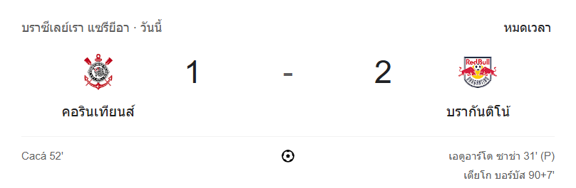 - จบครึ่งแรก: คอรินเทียนส์ 0-1 บรากันติโน่