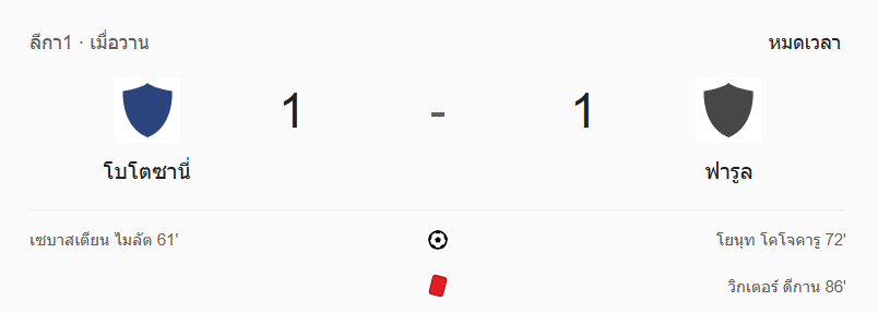 - จบครึ่งแรก: โบโตซานี่ 0-0 ฟารุล