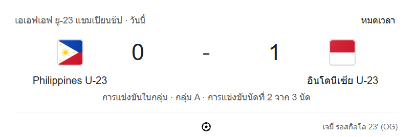 • หมดครึ่งแรก: ฟิลิปปินส์ U23 0-1 อินโดนีเซีย U23
