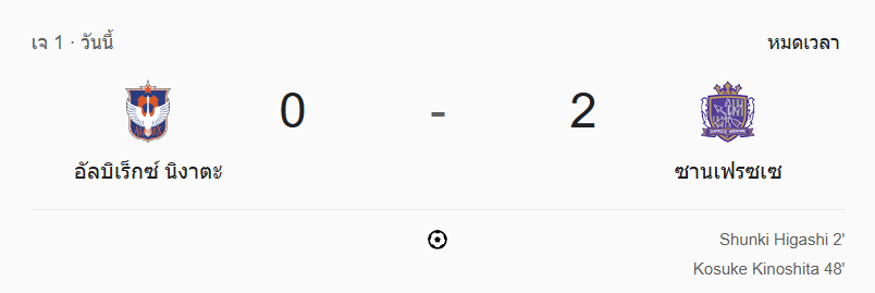 รายงานการแข่งขัน: อัลบิเร็กซ์ นิงาตะ 0-2 ซานเฟรซเซ ฮิโรชิม่า