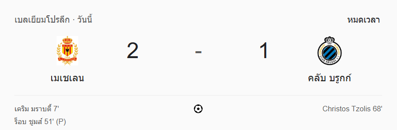 • หมดเวลา: เมเชเลนเฉือนชนะคลับ บรูช 2-1 คว้าสามแต้มในบ้าน!