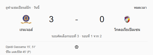 - หมดเวลา: เรนเจอส์ เปิดบ้านถล่ม วิคตอเรียเปิลเซ่น 3-0 กุมความได้เปรียบก่อนไปเยือนในนัดที่สอง