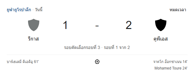 - จบครึ่งแรก: รีกาสตามหลังคูพีเอส 0-2