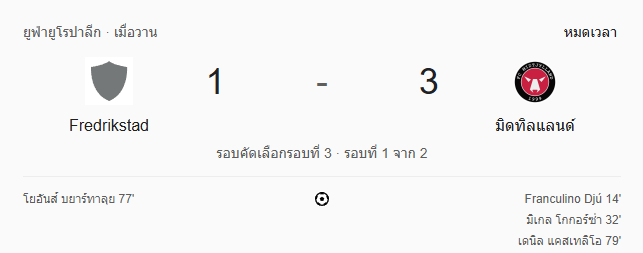 - หมดเวลา: Fredrikstad 1-3 มิดทิลแลนด์