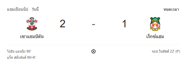 • หมดเวลา: เซาแธมป์ตัน 2-1 เร็กซ์แฮม