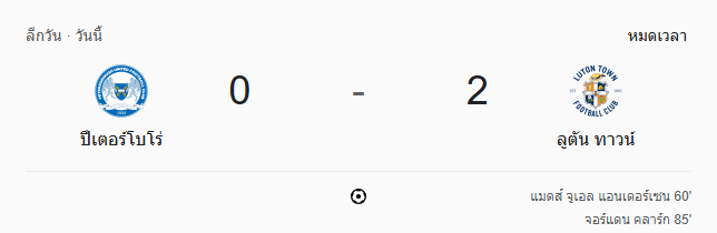• หมดเวลา: ปีเตอร์โบโร่ 0-2 ลูตัน ทาวน์