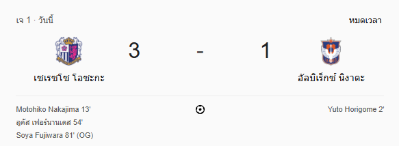 • นาทีที่ 97: จบเกม! เซเรโซ โอซากะ เปิดบ้านชนะ อัลบิเร็กซ์ นิงาตะ 3-1 เก็บสามแต้มได้สำเร็จ