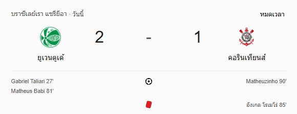 ยูเวนตูเด้ เก็บสามแต้มสำคัญในบ้านต่อหน้าแฟนบอล สร้างความมั่นใจอย่างมาก ขณะที่คอรินเทียนส์ต้องกลับไปแก้เกมรับและคมในจังหวะสุดท้าย หลังเสียโอกาสหลายครั้งและเสียคนในช่วงสำคัญของเกม