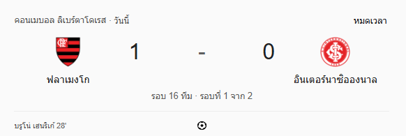 - หมดเวลา: ฟลาเมงโกเฉือนชนะ 1-0 กุมความได้เปรียบในรอบ 16 ทีม นัดแรก