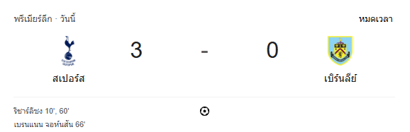 - จบครึ่งแรก: สเปอร์ส 1-0 เบิร์นลีย์