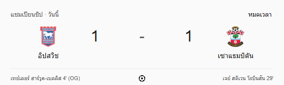 รายงานการแข่งขัน: อิปสวิช 1-1 เซาแธมป์ตัน