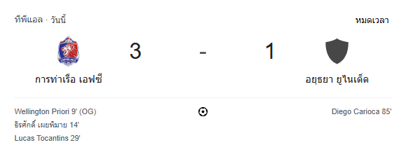 รายงานการแข่งขัน: การท่าเรือ เอฟซี 3-1 อยุธยา ยูไนเต็ด