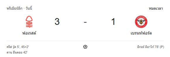 - นาทีที่ 96: จบเกม! น็อตติ้งแฮม ฟอเรสต์ เปิดบ้านอัด เบรนท์ฟอร์ด 3-1 เก็บสามแต้มเต็มแบบเชื่อมือเกมรุกครึ่งแรกและเกมรับที่นิ่งในครึ่งหลัง