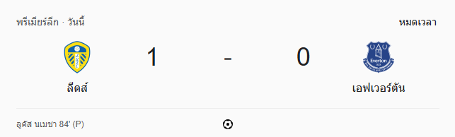 ลีดส์เล่นอย่างบากบั่น เปิดเกมรุกกดดันตั้งแต่นาทีแรกและไม่ยอมหมดแรงใจ จนมาปลดล็อกจากจุดโทษของ ลูคัส นเมชา นาที 84 ฝั่งเอฟเวอร์ตันมีโอกาสทองช่วงท้ายแต่ไร้ความคมและความเฉียบขาดพอ ทำให้สกอร์สุดท้ายจบที่ ลีดส์ ยูไนเต็ด 1-0 เอฟเวอร์ตัน ตามรูปเกมที่เดือดทุกวินาที
