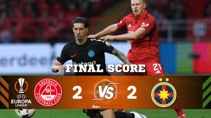 รายงานการแข่งขัน: อเบอร์ดีน 2-2 เอฟเอสซีบี (FCSB) เพลย์ออฟ ยูโรปาลีก เลกแรก