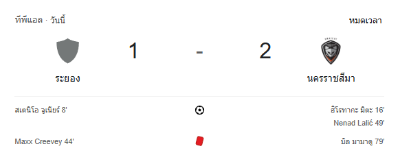 • หมดเวลา: ระยอง 1-2 นครราชสีมา ทีมเยือนคว้า 3 คะแนน