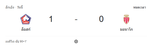 - หมดเวลา: ลีลล์เฉือนชนะ โมนาโก 1-0