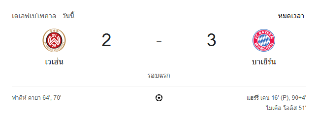 - จบครึ่งแรก: เวเฮ่น 0-1 บาเยิร์น